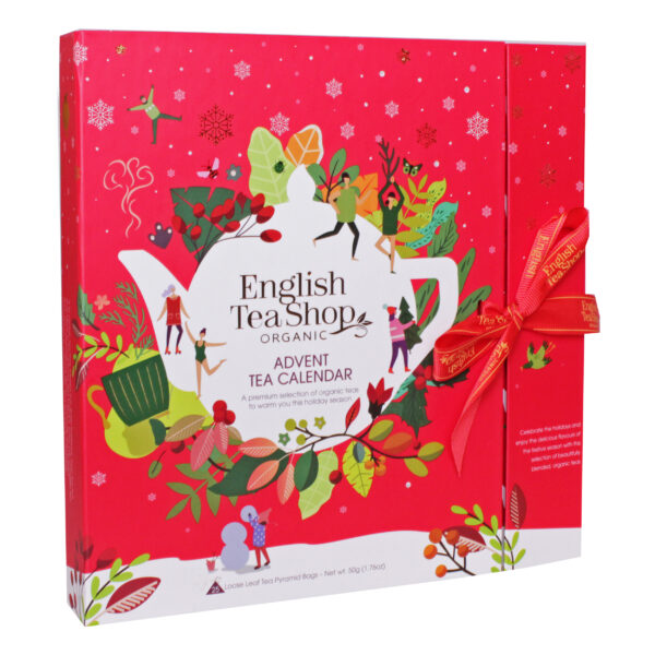 Kalendarz adwentowy składający się z 25 herbacianych piramidek w 13 smakach.Piramidki zostały wyprodukowane z organicznej, cejlońskiej herbaty.W skład kalendarza wchodzą bardzo ciekawe kompozycje smakowe, w których znajdziemy na przykład herbaty czarne z rozgrzewającymi dodatkami jak imbir, goździki, cynamon, kardamon czy gałka muszkatołowa.Herbaty zielone z miętą, płatkami róży, żeń-szeniem i jagodami acai, oraz herbaty ziołowe z rooibosem, trawą cytrynową, hibiskusem, rumiankiem, jabłkiem.Ilość składników zapewni nam bogaty smak pełen nowych doświadczeń smakowych i zapachowych.Kalendarz sprawdzi się jako doskonały prezent dla każdego miłośnika herbacianych nowości.Herbaty posiadają Certyfikat USDA ORGANIC.