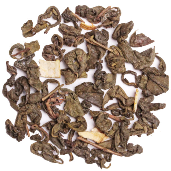 Intrygująca zielona herbata z dodatkiem Kombuchy.Kombucha znana również jako grzyb herbaciany to nic innego, jak sfermentowana herbata z dodatkiem cukru i grzybka Scoby.Najczęściej do produkcji tego napoju wykorzystuje się klasyczną, czarną herbatę, lecz fani tego napoju prześcigają się w nowych pomysłach tworząc Kombuchę na przykład z herbaty zielonej lub nawet kawy!Napój ten charakteryzuje się lekko musującą strukturą w której dominują delikatnie kwaskowe i owocowe nuty.Oprócz Kombuchy, w w składzie znajdziemy bazę w postaci doskonałej, zielonej herbaty Ceylon OPA, charakteryzującej się delikatnym i orzeźwiającym smakiem, który świetnie będzie się komponował z dodatkiem skórki cytryny. Całość dopełniona jest cudownym, cytrusowym aromatem, który pozostaje w pamięci na dłużej.