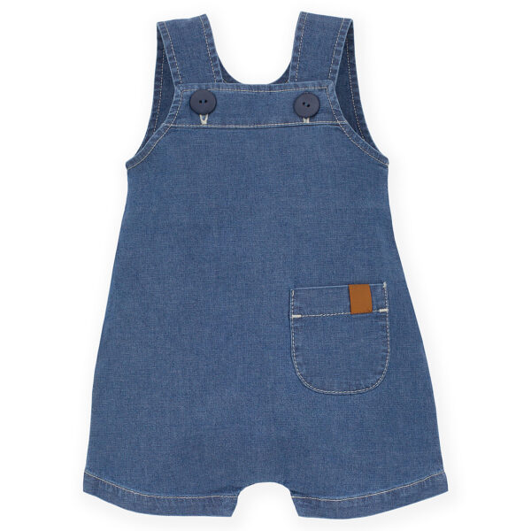 Jeansowe ogrodniczki dziecięce ozdobione z przodu kieszonką na dziecięce skarby. Kieszonka ozdobiona jest jasnymi przeszyciami oraz brązową tasiemką. Z tyłu umieściliśmy naszywkę z napisem Nice Day i słoneczkiem. Swobodny fason zapewnia maluszkowi komfort noszenia i nie krępuje mu ruchów podczas zabawy, codziennych aktywności czy nauki raczkowania. Ogrodniczki zapinane są na ramionach na duże guziki. Świetnie sprawdzą się na letnie spacery i wakacyjne wyjazdy. Ogrodniczki pasują do pozostałych ubranek z kolekcji Summer Nice Day. To niezbędny element letniej garderoby malucha.Instrukcja prania: max. 40°CSkład: bawełna 97%, elastan 3%.