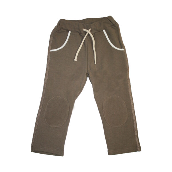 Wygodne, brązowe spodnie dziecięce z nieciskającym ściągaczem w pasie, który utrzymuje ubranko w odpowiednim miejscu. Luźny fason nie krępuje ruchów maluszka i zapewnia mu komfort noszenia podczas codziennych aktywności. Spodenki możesz dowolnie łączyć z pozostałymi ubrankami. Spodnie idealnie sprawdzą się na letnie, wieczorne spacery. Lamówka przy kieszonkach jest w kolorze ecru (jak na zdjęciu) dla rozmiaru 86, a w rozmiarze 80 jest ona w kolorze spodni tj. brązowa.Skład: bawełna 95%, elastan 5%.
