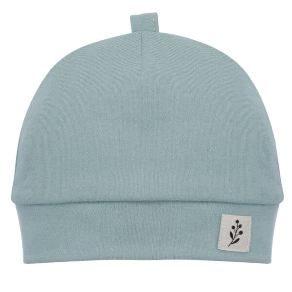Cienka czapeczka niemowlęca w modnym, miętowym kolorze, uszyta z przyjemnej w dotyku bawełny. Z przodu, po lewej stronie znajduje się ozdobna naszywka z kwiatuszkiem. Czapka dobrze przylega do główki, dzięki czemu zapewnia maluszkowi ochronę uszu przed chłodem. Jest idealna na jesienne oraz wiosenno-letnie spacery. Sprawdzi się również po wieczornej kąpieli. To niezbędny element każdej niemowlęcej wyprawki. Nasza czapka świetnie dopełni każdą stylizację z kolekcji My Garden. Skład: 100% bawełna.