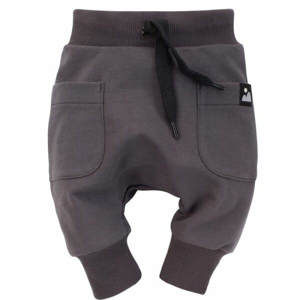 Grafitowe pumpy z dresówki, to niezbędny element dziecięcej garderoby. Po bokach są naszyte dwie kieszonki, idealne na dziecięce skarby. Na lewej kieszonce umieściliśmy ozdobną naszywkę z górami. W pasie jest szeroki, nieuciskający ściągacz uzupełniony gumką, który utrzymuje ubranko w odpowiednim miejscu, w każdej sytuacji. Specjalne sznureczki w pasie umożliwiają regulację szerokości w pasie. To przydatne rozwiązanie, gdy dziecko jest drobnej budowy. Nogawki wykończone są wygodnymi ściągaczami. Nasze pumpy mają luźny krój, dzięki czemu nie krępują ruchów malucha i zapewniają mu komfort w trakcie nauki raczkowania czy chodzenia. Spodnie możesz dowolnie łączyć z pozostałymi ubrankami z kolekcji Dreamer. Świetnie sprawdzą się podczas zabawy, a także na zajęcia w przedszkolu i w żłobku. Skład: 100% bawełna.