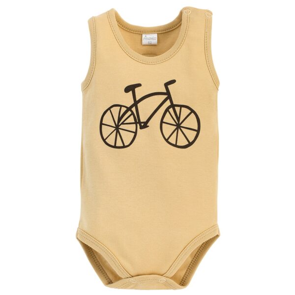 Żółte body niemowlęce na ramiączkach, ze 100% miękkiej bawełny z certyfikatem Oeko-Tex. Z tyłu, na wysokości karku umieściliśmy ozdobną naszywkę z napisem EVERYDAY IS POETRY, a z przodu nadrukowaliśmy duży rower. Bezpieczna metoda farb wodnych sprawia, że nasze nadruki są trwałe, nawet po wielu praniach. Nasze body Summertime jest rozpinane na lewym ramieniu oraz w kroku. Dzięki temu można wygodnie przewinąć lub ubrać maluszka. Do produkcji zatrzasków użyto antyalergicznego, bezniklowego tworzywa. Body możesz dowolnie łączyć z pozostałymi ubrankami z kolekcji Summertime, tworząc ciekawe zestawy. Warto o nim pamiętać kompletując zarówno letnią, jak i całoroczną garderobą maluszka. Nasze body na ramiączkach sprawdzi się na wakacyjne wyjazdy oraz spacery, może też pełnić funkcję dodatkowej warstwy ubrania w chłodniejsze dni. Skład: 100% bawełna.