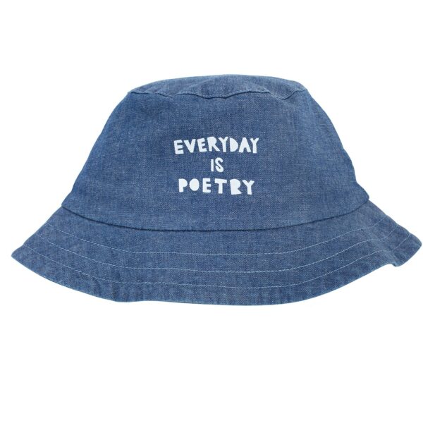 Modny kapelusz dziecięcy z cienkiego, niebieskiego jeansu, to Must Have letniej garderoby każdego dziecka. Z przodu umieściliśmy ozdobny napis EVERYDAY IS POETRY, który dodaje mu wakacyjnego charakteru. Kapelusz Summertime zapewni maluchowi odpowiednią ochronę przed słońcem, podczas spacerów i zabawy na świeżym powietrzu. Nasz kapelusik świetnie dopełni każdą stylizację z kolekcji Summertime. Warto o nim pamiętać, kompletując wyprawkę dziecka na wakacyjny wyjazd. Kapelusz Summertime, podobnie jak wszystkie produkty Pinokio, posiada certyfikat „Bezpieczny dla dziecka”.Skład: bawełna 97%, elastan 3%.