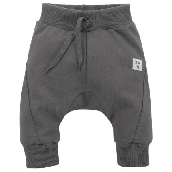 Pumpy dziecięce z grafitowej dresówki, to niezbędny element garderoby każdego dziecka. Spodnie mają ciekawe przeszycia oraz naszywkę z przodu z napisem Slow Life, które nadają całości fajnego charakteru. W pasie wszyty jest szeroki, nieuciskający ściągacz uzupełniony gumką, a nogawki wykończone są praktycznymi ściągaczami. Dzięki temu ubranko utrzymuje się w odpowiednim miejscu w trakcie codziennych aktywności. Specjalnymi sznureczkami można regulować szerokość w pasie. To przydatne rozwiązanie, gdy maluszek jest drobnej budowy. Sznureczki są zabezpieczone przed wysunięciem się. Luźny fason spodni oraz obniżony krok nie krępuje ruchów dziecka, gwarantując wygodę podczas zabawy, nauki raczkowania czy chodzenia. Spodenki można dowolnie łączyć z innymi ubrankami z kolekcji Slow Life. Doskonale sprawdzą się do żłobka. Odzież dziecięca Pinokio jest w całości wyprodukowana w Polsce. Bawełna, z której szyjemy ubranka posiada certyfikat Oeko-Tex Standard 100, co oznacza, że jest wolna od szkodliwych substancji, a więc bezpieczna dla Twojego dziecka. Skład: 100% bawełna.