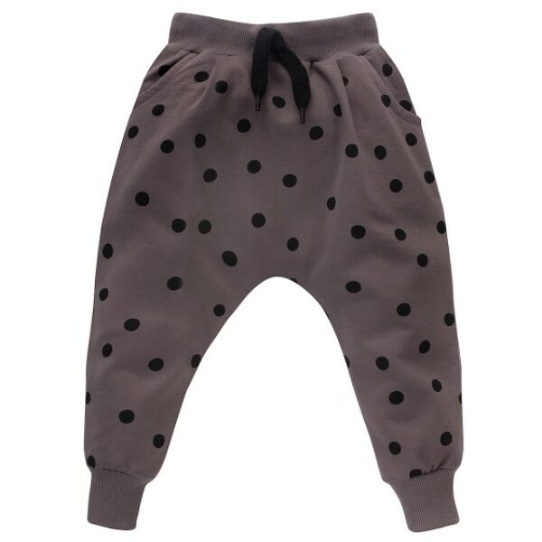 Wygodne spodnie pumpy dla dziewczynki, to niezbędny element garderoby każdego przedszkolaka. Uszyte są z miękkiej, grafitowej dresówki w modne w tym sezonie groszki. Luźny fason spodni oraz obniżony krok nie krępują ruchów dziecka, gwarantując komfort podczas zabawy oraz innych aktywności. Dwie kieszonki po bokach sprawdzą się idealnie na dziecięce skarby znalezione podczas spacerów lub ulubione drobiazgi.W pasie wszyliśmy szeroki, nieuciskający ściągacz uzupełniony gumką, a nogawki wykończyliśmy praktycznymi ściągaczami. Dzięki temu ubranko utrzymuje się w odpowiednim miejscu w każdej sytuacji. Specjalnymi sznureczkami można regulować szerokość w pasie. To przydatne rozwiązanie, gdy dziewczynka jest drobnej budowy. Dla bezpieczeństwa dziecka sznureczek jest umocowany do spodni w taki sposób, by nie mógł wysunąć się w całości.Nasze spodnie pumpy Julia będą świetnie wyglądać z bluzą w groszki lub jasną bluzeczką z tej samej kolekcji. To idealne stylizacje na zajęcia do przedszkola lub do zabawy.Skład: 100% bawełna.Od początku istnienia marki Pinokio, dbamy o najwyższą jakość naszych produktów. Ubranka szyjemy w polskich szwalniach, z dbałością o każdy, najmniejszy detal. Wybieramy materiały tylko od sprawdzonych, polskich partnerów i tylko te, które spełniają rygorystyczne standardy Oeko-Tex. Dzięki temu mamy pewność, że nasze ubranka są bezpieczne dla delikatnej skóry dziecka.