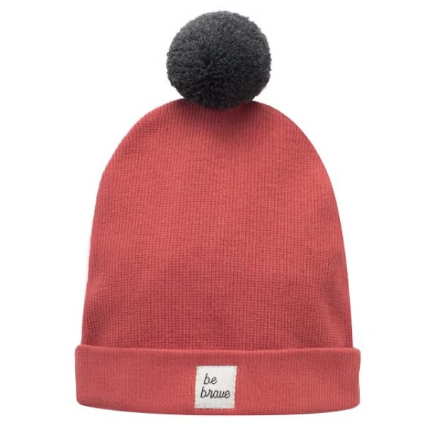 Świetna, zimowa czapka z kolekcji Winter, to niezbędny element garderoby każdego maluszka. Ma piękny odcień czerwieni, który z pewnością ożywi każdą stylizację. Uszyta jest z miękkiej dzianiny z dodatkiem elastanu, dzięki czemu bez problemu dopasuje się do główki dziecka. Czapka jest specjalnie wywinięta, a na czubku ma stylowy, grafitowy pompon. Dodatkowo z przodu umieściliśmy ozdobną naszywkę z napisem „Be Brave”, dzięki czemu całość wygląda bardzo modnie.Nasza czapka nie tylko skutecznie ochroni uszy i głowę dziecka przed chłodem, ale też świetnie dopełni każdą stylizację. Uniwersalny fason i kolor sprawiają, że będzie pasować praktycznie do wszystkiego. Nasza czapka sprawdzi się doskonale podczas jesienno-zimowych spacerów i wyjazdów. Kompletując wyprawkę dla swojego maluszka, warto o niej pamiętać.Skład: 95% bawełna, 5% elastan.
