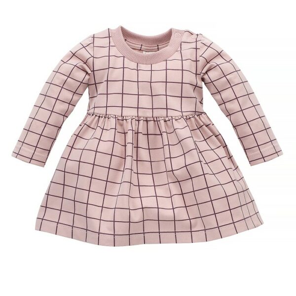 Dziewczęca sukienka z długim rękawem, w kolekcji Romantic uszyta została z delikatnej z bawełny w kolorze różowym z dodatkiem elastanu. Ozdobiona została modnym printem w ciemnoróżową kratkę, charakterystyczną dla całej kolekcji. Sukienka odcinana jest na linii klatki piersiowej. Zastosowaliśmy tam mocne marszczenie, które sprawia, że jest lekko rozkloszowana w dół i wygląda niezwykle dziewczęco. Ubranko sprawdzi się na różne okoliczności, jak imieniny, święta czy uroczystość w przedszkolu, ale również na co dzień. Świetnie komponuje się z pozostałymi ubrankami z kolekcji Romantic. Warto o niej pamiętać kompletując garderobę dla swojej córeczki. Ubranko jest wyprodukowane w Polsce i ma certyfikat „Bezpieczny dla dziecka”.uszyta w 95% z bawełny, w 5% z elastanunadruk wykonano bezpieczną metodą farb wodnych, odpornych na codzienne użytkowanie i pranieprzy szyi umieściliśmy delikatną, ozdobną stójkę ze ściągacza, która sprawia, że po ubraniu maluszek czuje się komfortowo i wygląda piękniedla ułatwienia ubierania, w rozmiarach 68-86, sukienka jest rozpinana na lewym ramieniu na dwie bezniklowe napkina zdjęciu modelka ma 98 cm wzrostu i nosi rozmiar 98, a druga ma 110 cm wzrostu i nosi rozmiar 110