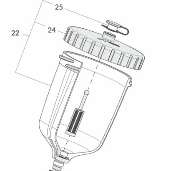 Pokrywka do kubka grawitacyjny PC-G600P-2 IWATA 94011220.Na schemacie element oznaczony numerem 24.Kubek PC-600P-2 dedykowany jest do modeli pistoletów IWATA: WS-400, LS-400, W300 WB, LPH-300
