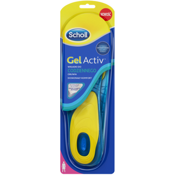 Doskonały komfortPodwójny żel wkładek Scholl GelActiv do codziennego obuwia rozmiar 38-42 (damskie) ma udowodnione działanie amortyzujące wstrząsy oraz pomaga redukować nadmierny ucisk wywołany chodzeniem czy codziennymi czynnościami. Twardszy żel zapewnia wsparcie dla podbicia oraz pięty, podczas gdy miękki żel wspomaga amortyzację i pochłania wstrząsy. Technologia GelActiv: Wbudowane ergonomiczne wkładki żelowe zapewniają doskonałą amortyzację i ochronę.Skutecznie pochłania wstrząsy i pomaga zmniejszyć nadmierny ucisk spowodowany chodzeniem lub bieganiem.