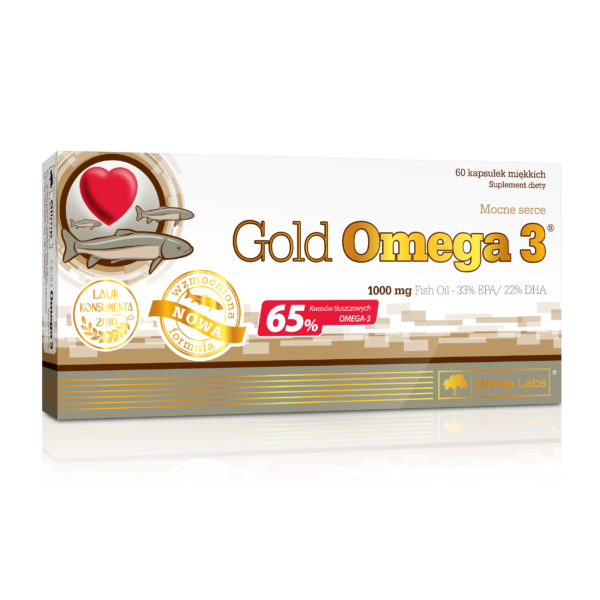 Olimp Gold Omega 3 - strażnik twojego serca Gold Omega 3 firmy Olimp to suplement diety zawierający wysokogatunkowy i skoncentrowany olej z ryb zimnowodnych, mianowany na 65% zawartości niezbędnych kwasów tłuszczowych omega-3 w postaci miękkich kapsułek. Kwasy tłuszczowe z rodziny omega-3 zalicza się do grupy wielonienasyconych kwasów tłuszczowych i określa się mianem niezbędnych nienasyconych kwasów tłuszczowych (NNKT), ponieważ muszą być bezwzględnie dostarczane z diety. Ponieważ trudno dostarczyć jest ich odpowiednią ilość wraz z pożywieniem podaż tych składników z dietą bywa często niewystarczająca, wówczas najlepszym rozwiązaniem jest suplementacja odpowiednimi preparatami zawierającymi w składzie kwasy omega-3. Przyjmowanie kwasów omega-3 w odpowiedniej ilości: - przyczynia się do prawidłowej pracy serca i układu krązenia, - pomaga w utrzymaniu prawidłowego poziomu trójglicerydów we krwi, - wpływa na utrzymanie prawidłowego cisnienie krwi, - wspiera pracę mózgu, - korzystnie wpływa na wzrok. Przeznaczenie: Ze względu na wybitne właściwości prozdrowotne kwasów omega-3 w zakresie profilaktyki chorób układu krążenia, suplement diety Gold Omega 3 polecany jest szczególnie osobom z podwyższonym poziomem cholesterolu, nadciśnieniem oraz chorobami serca. Kwasy omega-3 skutecznie wspomagają redukcję nadwagi, a także stanowią ważny element zapobiegający rozwojowi chorób nowotworowych. Zalecana dzienna porcja: 1 kapsułka raz dziennie. Skład: - Olej rybi (65% kwasów tłuszczowych omega-3) - 1000mgw tym: - 33% kwas eikozapentaenowy (EPA) - 330mg - 22% kwas dokozaheksaenowy (DHA) - 220mg - 10% inne kwasy omega-3 - 100mg - Witamina E - 12mg Przeciwwskazania: nadwrażliwośc na którykolwiek ze składników preparatu. Osoby chore na hemofilię, przyjmujące leki przeciwzakrzepowe, kobiety w ciązy oraz karmiące piersią stosowanie preparatu powinny skonsultować z lekarzem. Postać: kapsułkiOpakowanie: 60 kapsułek