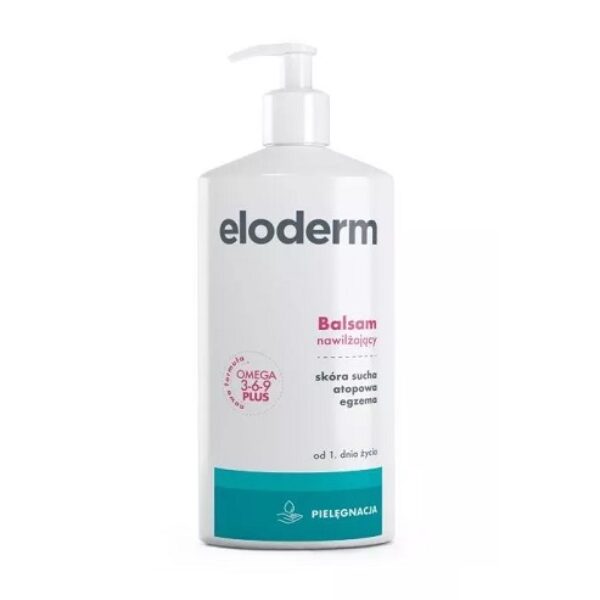 Charakterystyka(wg producenta):Emolient do codziennej pielęgnacji skóry suchej, atopowej, swędzącej oraz ze skłonnością do egzemy i alergii. Zapewnia odpowiednią pielęgnację skóry z AZS, zarówno w okresie remisji, jak i nasilenia zmian skórnych. Dzięki zawartości kompleksu Omega 3-6-9 PLUS skutecznie pielęgnuje skórę oraz zmniejsza jej wrażliwość. Odpowiedni od 1. dnia życia. Właściwości:-łagodzi uczucie swędzenia i zapobiega drapaniu,-długotrwale nawilża skórę,-łagodzi podrażnienia i zaczerwienienia,-daje uczucie, miękkiej i gładkiej skóry,-sprawia, że skóra wygląda zdrowo.Sposób użycia: Nanieść cienką warstwę Balsamu Eloderm na czystą, dokładnie osuszoną skórę. Następnie delikatnie wmasować.Przebadany dermatologicznie pod nadzorem lekarza neonatologa.