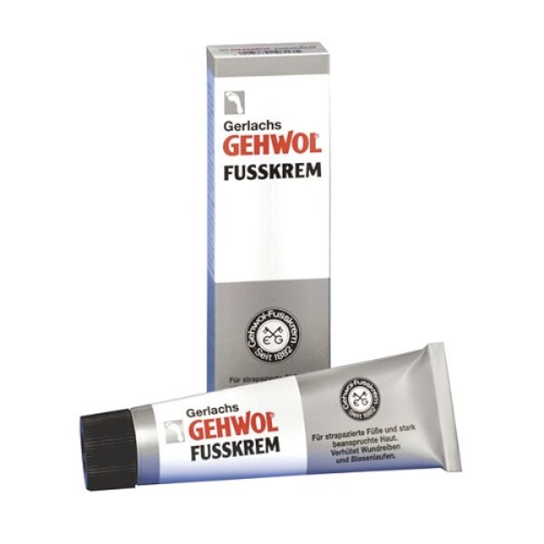 Charakterystyka(wg producenta):Krem marki Gehwol to uniwersalny kosmetyk do pielęgnacji stóp. Zapobiega pieczeniu i poceniu się stóp, a także powstawaniu ran i pęcherzy oraz odparzeniom skóry. Poprawia ukrwienie skóry, zapobiega rogowaceniu naskórka. Krem ma właściwości przeciwzapalne, zapobiega grzybicy stóp. Wspomaga proces leczenia ran i pęcherzy. Jest często stosowany w medycynie sportowej do masażu przesilonych mięśni i urazów. Nadaje się do pielęgnacji poamputacyjnych.Właściwości:-nawilża i regeneruje skórę,-działa łagodząco i przeciwzapalnie,-przeciwdziała poceniu się,-chroni przed odparzeniami skóry,-zapobiega rogowaceniu się naskórka oraz grzybicy.Skład:lanolina, naturalne olejki eteryczne z rozmarynu, tymianku, lawendy, eukaliptusa, talk, gliceryna.