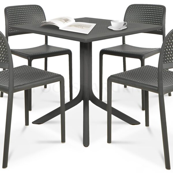 - meble ogrodowe BORA BISTROT/CLIP 4+1 Antracite zaprojektowała włoska marka Nardi, która produkuje najlepsze meble z tworzywa w Europie