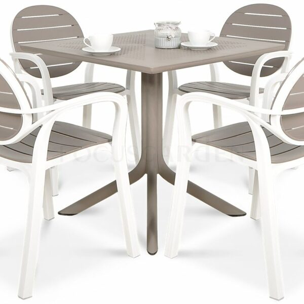 - meble ogrodowe PALMA/CLIP 4+1 Bianco Tortora zaprojektowała włoska marka Nardi, która produkuje najlepsze meble z tworzywa w Europie
