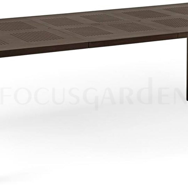 Modułowy stół ogrodowy Nardi Libeccio 160 łączy w sobie funkcjonalność nowych technologii z włoską stylistyką. Szereg walorów praktycznych, a do tego świetny wygląd - czyli dokładnie to wszystko, co w meblach do domu bądź firmowego lokalu najistotniejsze. Znakiem firmowym modelu Nardi Libeccio 160 Caffe jest długowieczność. Zastosowanie w stole do restauracji, hotelu czy ogrodu najlepszych dostępnych komponentów oczywiście ma swoje odzwierciedlenie w cenie, jednak rachunek ekonomiczny i tak wyjdzie na duży plus. Kawowy blat z ażurowym wzorem przez długie lata zachowuje pełnię koloru, a to za sprawą polipropylenu z domieszką włókna szklanego - odpornego na promienie UV i warunki atmosferyczne, prostego w pielęgnacji, neutralnego dla zdrowia i środowiska tworzywa sztucznego. Z kolei rama oraz nogi stołu ogrodowego Nardi Libeccio 160 wykonane są z trwałego, malowanego proszkowo aluminium. W ten sposób mebel prezentuje się świetnie nawet po wielu latach wzmożonego użytkowania, podczas gdy stoły z marketu poszłyby do wymiany już kilkukrotnie. Jakość produktu potwierdza certyfikat CATAS, dopuszczający meble do wykorzystania w lokalach publicznych - choćby hotelach, restauracjach czy kawiarniach. A gdyby mało tego było, stoły Nardi Libeccio 160 Caffe można łatwo dostosować do potrzeby chwili. Służą do tego regulowane nóżki oraz dodatkowy moduł blatu. Wydłużenie stołu ogrodowego ze 160 do 220 centymetrów zajmuje krótką chwilę, w efekcie nawet 8 osób może siedzieć razem w pełni komfortowo, bez zbędnego ścisku.