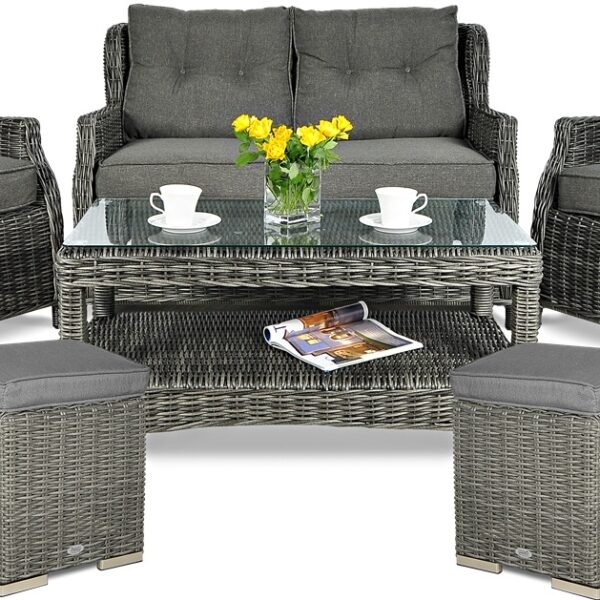 Meble z technorattanu TRIVENTO 2 + PUFY Dark Grey