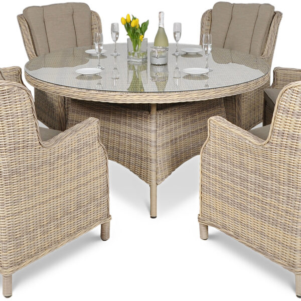 - w skład zestawu wchodzi 6 wygodnych foteli oraz duży, okrągły i efektowny stół