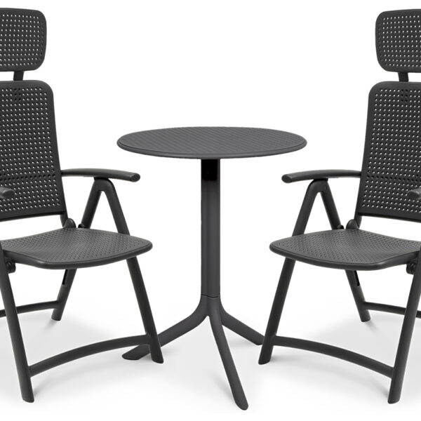 Komplet włoskich mebli ogrodowych najwyższej jakości. Zestaw Nardi Acquamarina/Step 2+1 Antracite składa się z dwóch stylowych, wygodnych krzeseł oraz eleganckiego stolika. Ten ostatni oferuje do wyboru dwa warianty: niski 40 cm lub wysoki 76,5 cm. Bez względu na wybór zestaw ogrodowy Nardi Acquamarina/Step 2+1 odznacza się szykownym wyglądem i ogromną funkcjonalnością. Piękny, czarny kolor mebli premium pozostaje nienaruszony przez długie lata, bez względu na pogodę. Krzesła oraz stół Nardi Acquamarina/Step 2+1 Antracite powstają z najlepszych dostępnych materiałów. Znakomicie sprawdzą się zarówno na przydomowym tarasie, balkonie czy ogrodzie, jak też w przestrzeni publicznej. Cały zestaw Nardi Acquamarina/Step 2+1 zaprojektowano z myślą o lokalach HoReCa, meble posiadają wszystkie niezbędne certyfikaty. W sklepie FocusGarden mogą je Państwo zamówić po okazyjnej cenie. Zapraszamy do skorzystania z wyjątkowej oferty na zestaw ogrodowy Nardi Acquamarina/Step 2+1 w kolorze Antracite!
