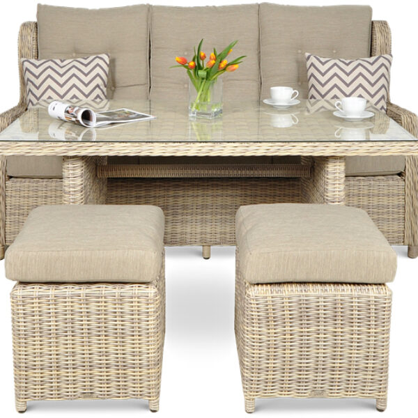 Meble technorattanowe TRIVENTO DINING 3 + PUFY Beige