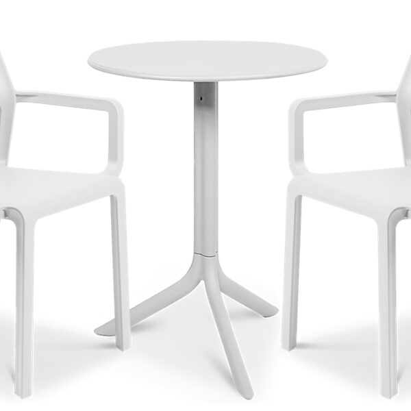 - meble balkonowe TRILL/SPRITZ 2+1 Bianco zawierają w komplecie dwa wygodne krzesła i super funkcjonalny stolik, który standardowo oferuje do wyboru dwie wysokości: jadalniana 76,5cm oraz kawowa 40cm