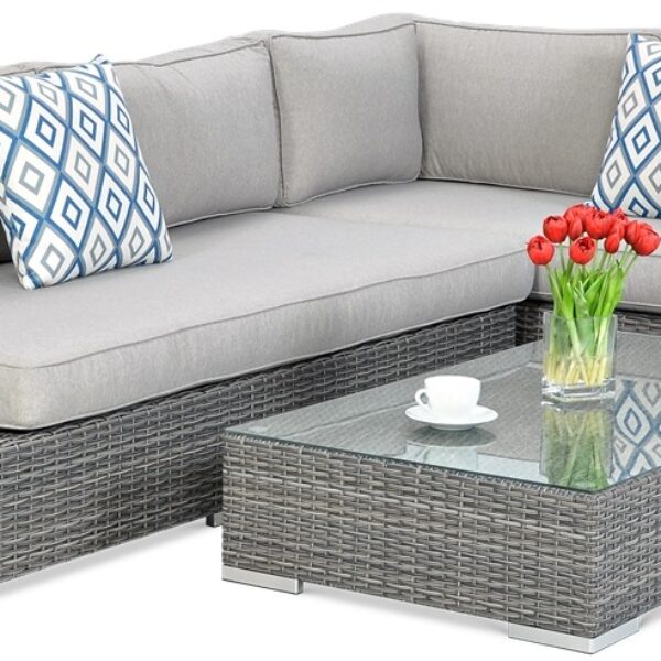 Narożnik z technorattanu VERONA Dark Grey rekomendujemy dla osób ceniących komfort oraz wyszukany i niepowtarzalny wygląd. Komplet składa się z dwóch modułów oraz stolika, które w wygodnych warunkach pozwolą wypić popołudniową kawę z przyjaciółmi lub rodziną. Zastosowane materiały zapewniają trwałość i odporność na warunki atmosferyczne, a eleganckie i gustowne wykończenia detali podkreślają jego wysoką jakość. Charakterystyczne przedłużenia modułów, powiększają optycznie zestaw nadając mu wyjątkowego uroku. Opcjonalnie mogą posłużyć jako półki na lekkie, drobne podręczne przedmioty Dla miłośników designu, gorąco polecamy.
