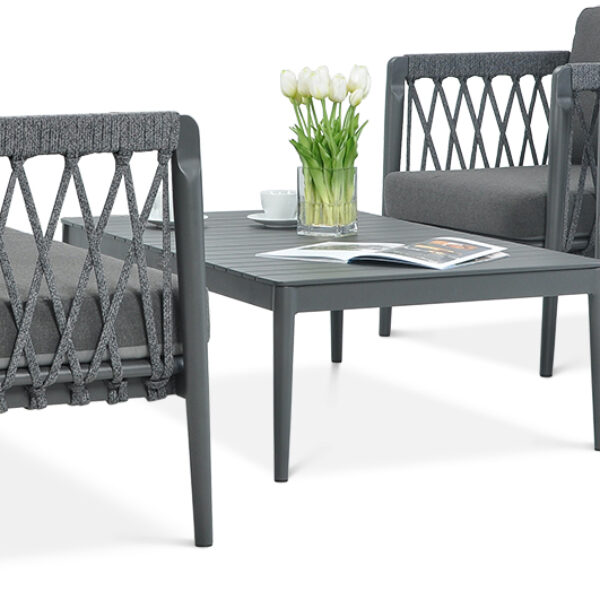 Wspaniała propozycja dla każdego, komu zależy na komforcie w równym stopniu, co na nowoczesnej stylistyce. Zestaw wypoczynkowy Portland Grey składa się z 4 mebli ogrodowych najwyższej jakości: 2 foteli, trzyosobowej kanapy oraz stolika kawowego z dużym, prostokątnym blatem. Ich projekt i kolorystyka doskonale wpisują się w trendy, które od jakiegoś czasu są na topie i cieszą się dużą popularnością wśród odbiorców. Fotele i sofa z zestawu wypoczynkowego Portland posiadają oryginalną konstrukcję, na wytrzymałym stelażu z aluminium, za pomocą nylonowych sznurów wypleciono oparcia i siedziska. Interesujący wzór nie tylko wygląda znakomicie, ale też wpływa na wygodę. Pod względem komfortu zestawowi wypoczynkowemu Portland Grey trudno cokolwiek zarzucić, znajdujące się w komplecie poduchy są grube, a ich poszewki łatwo oczyścić nawet z trudnych plam. Generalnie cały zestaw jest mało wymagający, do utrzymania stolika, foteli i sofy w doskonałym stanie potrzeba jedynie wilgotnej ścierki. Wszystkie meble utrzymują fabryczne nasycenie szarego koloru przez długi czas, nawet przy użytkowaniu ich wyłącznie na zewnątrz. Zestaw Portland powstał ze starannie wyselekcjonowanych materiałów, co zapewnia meblom ogrodowym pełną odporność na opady, promieniowanie UV i inne czynniki pogodowe. Tym samym masz pewność, że będziesz z nich korzystać przez wiele sezonów. Zamów zestaw wypoczynkowy Portland Grey i postaw na to, co w meblach ogrodowych najlepsze!