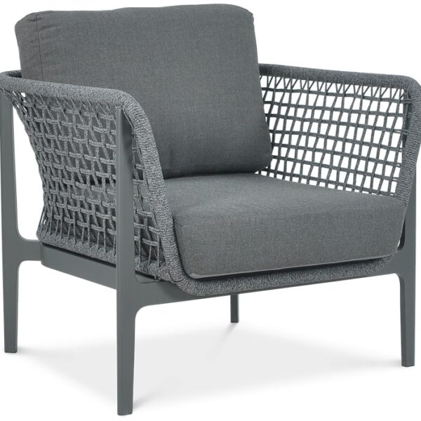 Uzupełnieniem narożnika EMERALD może być ten dedykowany, duży i wygodny fotel. Do jego budowy, podobnie jak w przypadku narożnika wykorzystano aluminium oraz sznur nylonowy w ażurowej formie, który nadaje całości jedynej w swoim rodzaju nowoczesnej i niepowtarzalnej kompozycji. O kompletny efekt dbają grube i wygodne poduszki, a cały fotel utrzymany jest w najmodniejszej w ostatnich sezonach szarości. Zastosowanie najlepszej jakości materiałów daje gwarancję wysokiej odporności na warunki atmosferyczne i bezkłopotliwej eksploatacji.