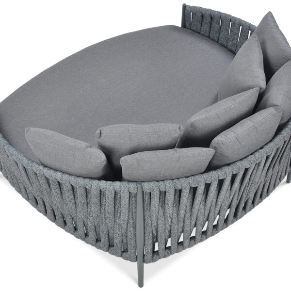 Luksusowa leżanka wypoczynkowa Monza Grey to produkt na miarę XXI wieku, zaprojektowany z myślą o najbardziej wymagających odbiorcach. Unikalny, niezwykle atrakcyjny wygląd oraz niebywały komfort trafią idealnie w wyrafinowane gusta. Wyróżnikami leżanki są przede wszystkim oryginalne kształty, dopracowanie wykonania w najmniejszych szczegółach oraz zastosowanie materiałów najwyższej klasy. Dzięki temu mebel sprawdza się zarówno we wnętrzach, jak i w ogrodzie albo przy basenie. Aluminiowa konstrukcja oraz solidny, nylonowy sznur sprawiają, że leżanka wypoczynkowa Monza Grey bardzo dobrze znosi wszelkie kaprysy pogody. I nie trzeba wszystkiego po kilka razy zabezpieczać impregnatem! Ograniczając się do podstawowej pielęgnacji i tak masz pewność, że utrzymane w odcieniach szarości elementy pozostaną wyraziste. Podobnie jak poczucie wygody, które nawet po wielu latach intensywnego użytkowania utrzyma się na wysokim poziomie. Razem z leżanką wypoczynkową Monza dostaniesz sporo poduszek, tak potrzebnych do spokojnego relaksu. Każda z nich posiada zdejmowaną poszewkę, co ułatwia szybkie rozwiązanie problemu ewentualnych plam. Na leżance może swobodnie odpoczywać parę osób, ale równie dobrze możesz mieć ją całą tylko dla siebie! Zamawiając leżankę wypoczynkową Monza otrzymasz mebel wart swojej ceny: spełniający wszelkie standardy, modny, żywotny, a także ponadprzeciętnie komfortowy.