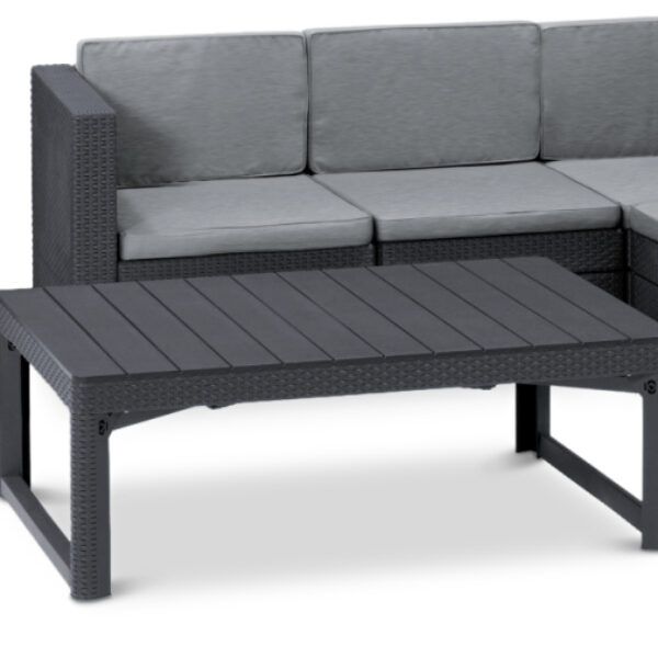 Szukasz komfortowego kompletu mebli do swojego ogrodu? Zestaw PROVENCE/LYON + Fotel Graphite pomoże Ci cieszyć się ciepłymi dniami wraz z całą rodziną i przyjaciółmi. Niezwykle praktyczny i elegancki łączy lekkość z solidnością, trwałość z przystępną ceną i wytrzymałość z bardzo estetycznym wyglądem. Konstrukcja wykonana z polipropylenu o strukturze rattanu jest bardzo solidna i odporna na wszelkie czynniki atmosferyczne. Dlatego idealnie sprawdzi się na zewnątrz – i to przez cały rok! Zestaw mebli ogrodowych PROVENCE to elegancki narożnik wypoczynkowy, dopasowany do niego stylistycznie fotel oraz niezwykle praktyczny stół LYON. Możliwość ustawienia tego ostatniego w pozycji niskiej (stolika kawowego) lub wysokiej (stołu jadalnianego) sprawia, że cały zestaw staje się znacznie bardziej wszechstronny. Co więcej, narożnik PROVENCE ma budowę modułową, dlatego możesz mu nadać wybrany kształt. Wszystkie siedziska i oparcia są pokryte miękkimi poduszkami zapewniającymi maksymalną wygodę. Zestaw PROVENCE jest nie tylko praktyczny, ale również świetnie się prezentuje. Technorattanowa faktura i grafitowy kolor pasują w zasadzie do każdej aranżacji ogrodu. Zaproś go do siebie, a nie pożałujesz – na pewno stanie się wspaniałym towarzyszem pogodnych dni.