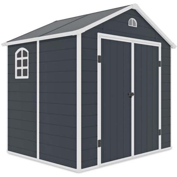 Domek ogrodowy VERMONT 8x6 Cold Grey stanowi doskonałą alternatywę dla klasycznych szop ogrodowych. Ten nowoczesny składzik zapewni idealne warunki do przechowywania wszelkich niezbędnych narzędzi, sprzętów i akcesoriów ogrodowych, np. kosiarek, łopat, wiaderek. Model VERMONT stworzono z myślą o zachowaniu współczesnych trendów aranżacyjnych. Wykonano go z polipropylenu – tworzywa sztucznego będącego świetną alternatywą dla drewna. Dodatkowo domek posiada stalowe profile wzmacniające konstrukcję. Dzięki zastosowanym materiałom jest niezwykle trwały i odporny na niekorzystne warunki i czynniki atmosferyczne, takie jak: deszcz, śnieg, zmienne temperatury, promieniowanie UV, wilgoć. W przeciwieństwie do drewnianych szop nie wymaga impregnacji ani skomplikowanych zabiegów pielęgnacyjnych – do jego wyczyszczenia wystarczy tradycyjna myjka ciśnieniowa. Domek ogrodowy wyposażono w panel wentylacyjny, który zapewnia odpowiednią cyrkulację powietrza wewnątrz budowli, dzięki czemu w środku nie powstaje wilgoć mogąca wpływać na rdzewienie metalowych elementów. Spadzisty dach zabezpiecza konstrukcję przed zaleganiem na niej śniegu i wody deszczowej. Jakość wykonania i uniwersalny design gwarantują trwałość na lata i możliwość dopasowania do niemal każdej aranżacji ogrodowej. Domek ogrodowy wymaga samodzielnego złożenia. Bez obaw! Zestaw zawiera jasną i czytelną instrukcję, a montaż nie wymaga użycia specjalistycznych narzędzi.