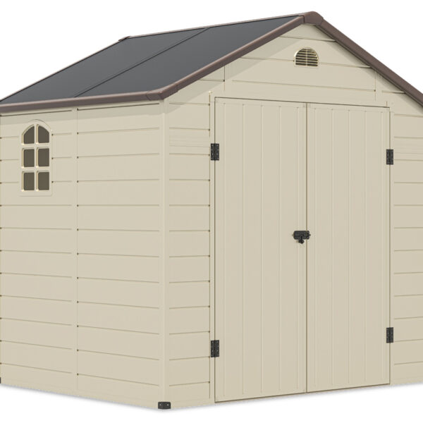 Domek ogrodowy VERMONT 8x6 Beige stanowi doskonałą alternatywę dla klasycznych szop ogrodowych. Ten nowoczesny składzik zapewni idealne warunki do przechowywania wszelkich niezbędnych narzędzi, sprzętów i akcesoriów ogrodowych, np. kosiarek, łopat, wiaderek. Model VERMONT stworzono z myślą o zachowaniu współczesnych trendów aranżacyjnych. Wykonano go z polipropylenu – tworzywa sztucznego będącego świetną alternatywą dla drewna. Dodatkowo domek posiada stalowe profile wzmacniające konstrukcję. Dzięki zastosowanym materiałom jest niezwykle trwały i odporny na niekorzystne warunki i czynniki atmosferyczne, takie jak: deszcz, śnieg, zmienne temperatury, promieniowanie UV, wilgoć. W przeciwieństwie do drewnianych szop nie wymaga impregnacji ani skomplikowanych zabiegów pielęgnacyjnych – do jego wyczyszczenia wystarczy tradycyjna myjka ciśnieniowa. Domek ogrodowy wyposażono w panel wentylacyjny, który zapewnia odpowiednią cyrkulację powietrza wewnątrz budowli, dzięki czemu w środku nie powstaje wilgoć mogąca wpływać na rdzewienie metalowych elementów. Spadzisty dach zabezpiecza konstrukcję przed zaleganiem na niej śniegu i wody deszczowej. Jakość wykonania i uniwersalny design gwarantują trwałość na lata i możliwość dopasowania do niemal każdej aranżacji ogrodowej. Domek ogrodowy wymaga samodzielnego złożenia. Bez obaw! Zestaw zawiera jasną i czytelną instrukcję, a montaż nie wymaga użycia specjalistycznych narzędzi.