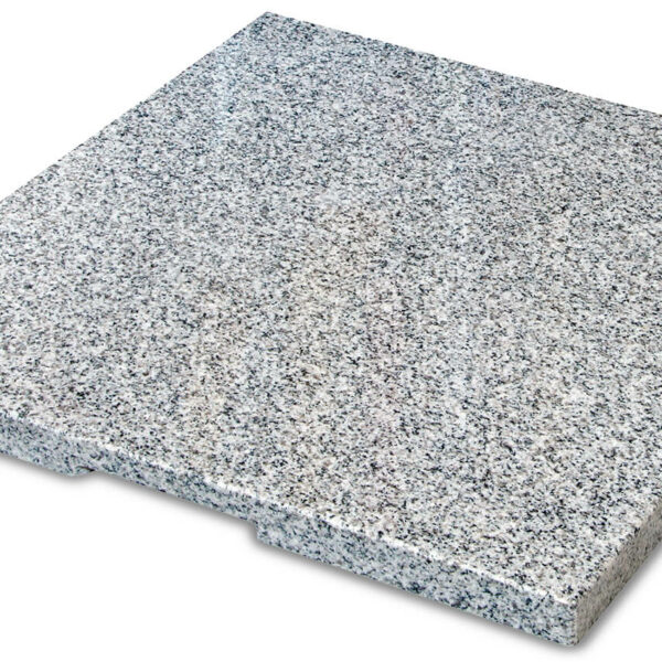 Płyty granitowe to łatwy, uniwersalny sposób na obciążenie metalowej podstawy parasola. To rozwiązanie odpowiednie przede wszystkim do niezbyt dużych modeli – głównie takich osadzonych na nodze bocznej. Płyta granitowa Eco o wadze 25 kg może być stosowana w połączeniu z modelami:
