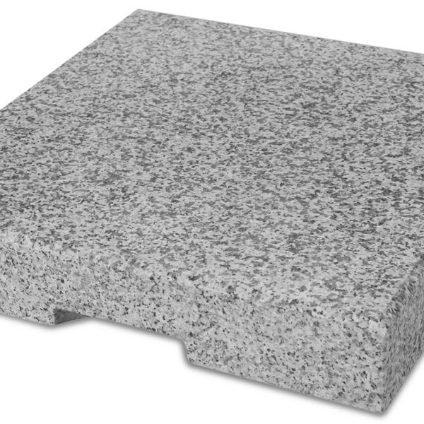 Płyty granitowe to idealne obciążenie dla parasoli ogrodowych, ponieważ są bardzo trwałe, solidne i eleganckie. Ta oferta obejmuje płytę o wadze 55 kg, która użytkowana w zestawie 2 lub 4 sztuk idealnie ustabilizuje parasol na metalowym stojaku (z masztem bocznym). Ten produkt nadaje się do współpracy z parasolem Protect 400 P (wymagane 4 płyty) oraz z innymi podobnymi modelami. Płyty granitowe mogą być użytkowane na zewnątrz przez cały rok, ponieważ są odporne na działanie niesprzyjających warunków atmosferycznych. Mają wpuszczane uchwyty w spodniej części, co ułatwia ich przenoszenie. Naturalny kamień, z którego są wykonane, będzie się świetnie komponować z niemal każdym tarasem, ogrodem czy patio.