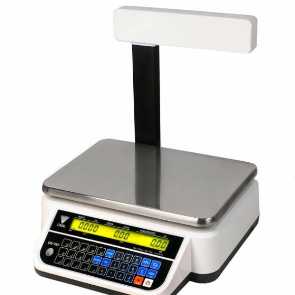 Elektroniczna waga kalkulacyjna z wysięgnikiem, przeznaczona do małych placówek handlowych oraz na targowiska. Podstawowe cechy wagi to 14 klawiszy szybkiego dostępu, współpraca z kasami fiskalnymi poprzez RS-232, podwójny zakres ważenia. Urządzenie wyposażone w doskonały, dwustronny podświetlany wyświetlacz LCD, posiadający wskaźnik niskiego poziomu napięcia akumulatora. Możliwość zaprogramowania cen 99 artykułów, funkcja przeliczania waluty Euro. Waga wyposażona jest w szalkę o podwyższonej trwałości wykonanej ze stali nierdzewnej 320x245mm. Waga posiada zasilanie sieciowe lub akumulatorowe przy dodatkowym zakupie akumulatora 5Ah, 6V DC, 1,2W, który po pełnym naładowaniu umożliwia do 300 godzin pracy bez funkcji podświetlenia wyświetlacza i do 15 godzin pracy z podświetleniem.