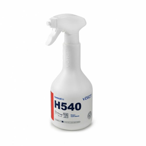 Środek H540 to Profesjonalny, gotowy do użycia produkt przeznaczony do codziennego mycia łazienek i urządzeń sanitarnych. Skutecznie usuwa osady mineralne, mydlane i tłuste zabrudzenia z wodoodpornych powierzchni. Zapewnia nieskazitelny wygląd armatury, kabin prysznicowych, wanien kąpielowych emaliowanych i akrylowych oraz powierzchni ceramicznych i porcelanowych. Po jego użyciu pomieszczenie wypełni się delikatnym, orzeźwiającym zapachem. Nie wymaga wycierania do sucha. Nie uszkadza mytych powierzchni. Właściwości preparatu H540:nie pozostawia smugzapobiega powstawaniu pleśnipozostawia przyjemny zapachbezpieczny dla mytych powierzchniskutecznie usuwa naloty z mydła i kamienia wodnego, tłusty brud i rdzawe zaciekiSposób użycia:Spryskać preparatem ściereczkę (nie więcej niż 2-3 dozy). Przetrzeć powierzchnię ściereczką. Specyfikacja: Postać: bezbarwna ciecz, pH 2-3Magazynowanie i utylizacjaPrzechowywać w temperaturze nie przekraczającej 40 °C. Unikać źródeł ciepła, promieniowania i elektrostatyki. Przechowywać z dala od środków spożywczych. Przechowywać z dala od dzieci.Instrukcje bezpieczeństwa dla użytkownikaZawsze, przed pierwszym zastosowaniem produktu, należy zapoznać się z treścią Karty Charakterystyki oraz ulotki technicznej produktu. Przed każdym użyciem należy przeczytać etykietę i informacje dotyczące produktu. Chronić przed dziećmi.Producent: PPUH VOIGT Sp. z o.o. ul. Jordana 90, 41-813 Zabrze, Polska Tel.: +48 322722573, Fax: +48 322723917, info@voigt.pl