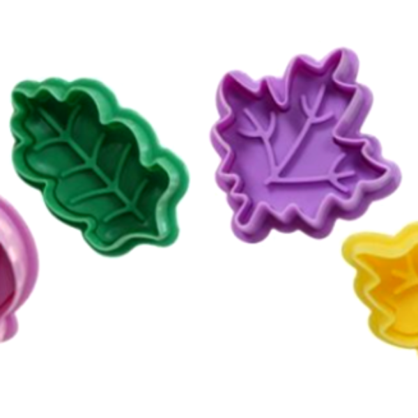 Wycinaki plastikowe z motywami liści do wycinania z mas plastycznych i cukrowych. 4 sztuki o wym. 4,5x6 cm.