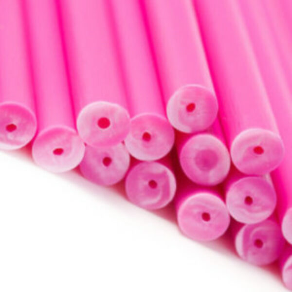 Plastikowe patyczki do lizaków w kolorze różowym. Niezbędne do domowego wyrobu lizaków lub cake pops.Opakowanie 1kg.