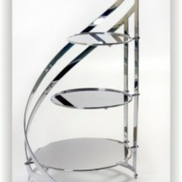 Stojak doskonale sprawdza się na torty weselne i inne wypieki, 3-elementowy w formie spirali. Wykonany ze stali chromowej. Konstrukcja i podstawa mocna oraz stabilna . Wymiary talerzy: 20, 26, 32 cm.