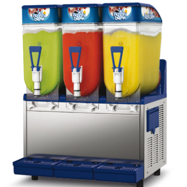 Potrójny (chroniony patentem) system mieszający, dzięki któremu uzyskać można idealną, homogeniczną masę gotowego produktu; zapobiega tworzeniu się zatorów lodowych, zwłaszcza w przedniej, górnej części zbiornika roboczego.Niezależny (automatyczny) system chłodzenia powietrzem każdego zbiornika; rozwiązanie to redukuje znacznie czas przygotowania napojów nawet przy wysokiej temperaturze otoczenia, a ponadto pozwala na korzystanie tylko z jednego zbiornika urządzenia, specjalna konstrukcja kurka spustowego, która pozwala na zdemontowanie go w celu oczyszczenia urządzenia bez użycia żadnych narzędzi.Wyłącznik bezpieczeństwa zatrzymujący pracę mieszających części ruchomych w zbiorniku roboczym po otwarciu pokrywy, opcja temperatur dodatnich umożliwiająca zastosowanie wszystkich lub poszczególnych zbiorników urządzenia jako schładzaczy do napojów (dzięki niezależnym systemom chłodzenia każdego zbiornika).