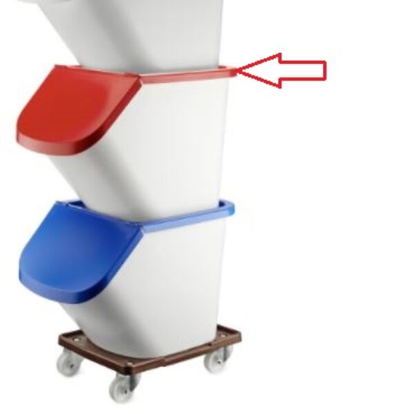 Pokrywka uchylna wykonana z wysokiej jakości tworzywa sztucznego w kolorze czerwonym, odpowiednia do pojemnika o numerze art.20022.