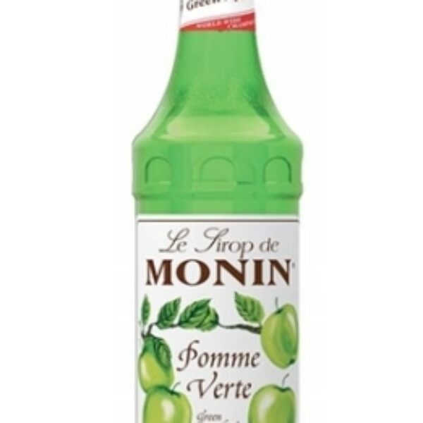 Zielone jabłka mają jasne, żywozielone zabarwienie, chociaż niektóre mogą mieć różowe rumieńce. Są chrupiące, soczyste, cierpkie – słodkie jabłka, które są doskonałe zarówno po ugotowaniu, jak również surowe. Najlepiej znana ich odmiana to Granny Smith, która pochodzi z Australii.Syrop zielone jabłko producenta Monin jest barwy przezroczystej, jasnozielonej z żółtymi przebłyskami. Posiada odświeżający, a zarazem cierpki, słodki i soczysty smak świeżo zerwanego jabłka Granny Smith, który można wzmocnić łącząc go z innymi aromatami słodko-cierpkimi lub złagodzić mieszając z aromatami bogatymi i słodkimi.Główne jego zastosowanie to napoje gazowane, lemoniady, koktajle, herbaty, poncze owocowe oraz smoothies.Skład: cukier, woda, kwas: kwas cytrynowy, zagęszczony sok z zielonego jabłka, aromat naturalny, barwnik: E133. Sok z zielonego jabłka: 10%.