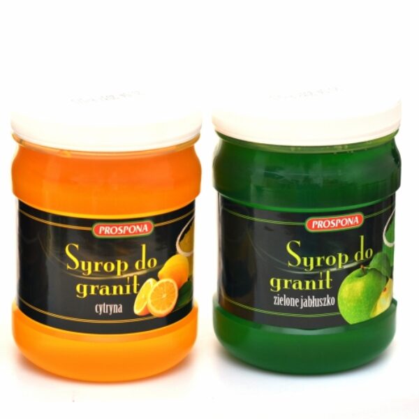 Syrop do granitorówGranita – tradycyjny deser włoski (dokładniej sycylijski) mający postać na wpół zamrożonej substancji przypominającej konsystencją lody lub sorbet, robiony z wody, cukru i aromatów smakowych. Przygotowywany jest zazwyczaj w maszynie do lodów. Możliwe jest także przygotowanie w warunkach domowych.Syropy do granit - to bazy służące do produkcji orzeźwiających deserów o wpół zamrożonej konsystencji tzw. GRANIT. Wspaniała alternatywa dla deserów lodowych chętnie serwowanych w upalne dni.* dostępnych 7 smaków syropów o wyrazistych smakach i kolorach.: brzoskwinia, cytryna, pomarańcza, cola, zielone jabłko, wiśnia, tropikalny* Dozowanie: 1 część syropu : 4 części wody* Zawartość owoców: 10%-25%* Ekstrakt: min. 65% * Opakowanie: słój plastikowy 1,2 kg* Termin przydatności: 12 miesięcy