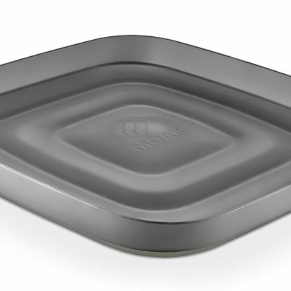 Prostokątna taca wykonana z wysokiej jakości przeźroczystego tworzywa sztucznego w kolorze czarnym.