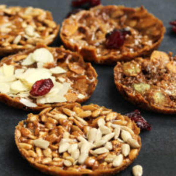 Florentynki to ciastka przygotowywane z różnego rodzaju bakalii: orzechów, migdałów, żurawiny oraz ziaren: sezamu, słonecznika, dyni, sezamu oraz kandyzowanych owoców zapieczonych w masie karmelowej. Do ich wypieku wykorzystuje się papilotki lub formy silikonowe.Można przygotowywać je także w formie bakaliowych batonów, koszyczków lub używać masy florentynkowej jako wierzchniej warstwy dekorującej ciasto np. do popularnej pszczółki.Podstawowa receptura:- mieszanka cukiernicza florentynki - 500 g- płatki migdałowe lub słupki migdałowe lub orzechy rozdrobnione laskowe, włoskie, arachidowe - 500 g (Najlepsze są z migdałami lub orzechami laskowymi bez skórek)Pomieszać florentynkę z np. migdałami, nałożyć łyżką do foremki silikonowej lub miękkiej aluminiowej jednorazowej.Piec ok 4 minut w piecu temp. 200℃ aż dostanie bardzo lekkiego koloru jasnego karmelu.