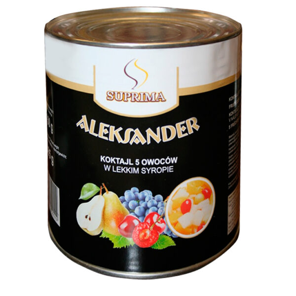 Owoce w puszkach są wyprodukowane wyłącznie z najwyższej jakości surowców pochodzących ze sprawdzonych źródeł. Szeroka gama oraz oryginalne i niepowtarzalne smaki dają szerokie możliwości ich zastosowania zarówno w wyrobach cukierniczych jak i deserach.Doskonale sprawdzą się przy produkcji ciast, lodów, gofrów i galaretek.Składniki: brzoskwinia, gruszka, ananas, winogrono, wiśnie zawierają barwnik E127, woda, cukier, regulator kwasowości: kwasek cytrynowy, przeciwutleniacz: kwas askorbinowy.