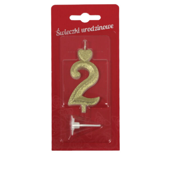 Świeczka cyfra 2 perłowo-złota wys. 65 mm gr. 10 mm 762102