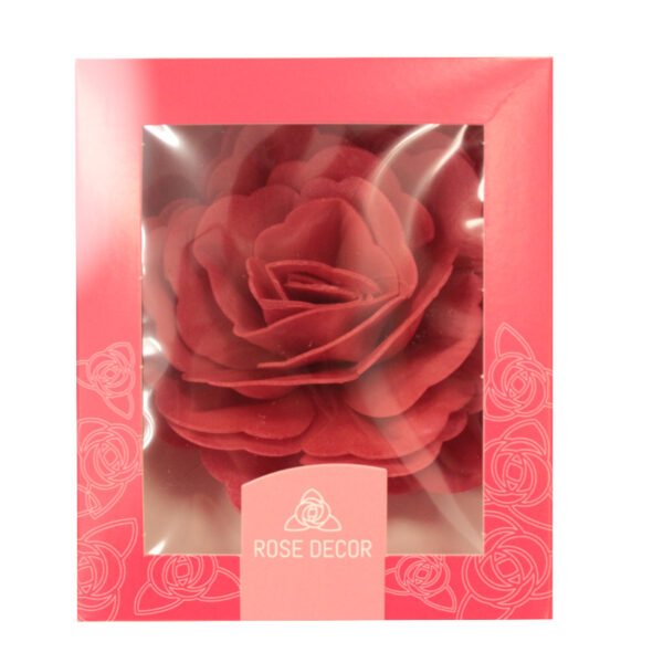 Kwiat Róża Chińska 125 czerwona opłatkowa śr.12,5CM firmy DAISY DECOR 450201. Efektowna dekoracja w kształcie róży chińskiej wykonanej z opłatka. Idealnie sprawdzi się na wszelakich tortach. Kwiat w połączeniu z innymi kwiatami dopełni każdą kompozycję.