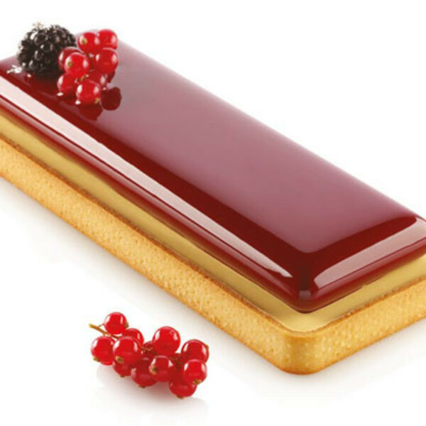 Zestaw składający się z nierdzewnego rantu perforowanego o wymiarach 26,5x10,5 cm wykonanego z materiału termoplastycznego, który jest odporny na zgniatanie oraz nie przywiera do wypieków przeznaczonego do produkcji spodów tarty i formy silikonowej o wymiarach 23,5x7,5x2 cm, idealnej do stworzenia pianki na tarty. Profesjonalna forma włoskiej produkcji jest w 100% bezpieczna w kontakcie z żywnością. Ma wszechstronne zastosowanie do produkcji lodów, wyrobów cukierniczych oraz w restauracjach i kawiarniach. Wytrzymała na temperaturę od -60 °C do + 230 °C.Pojemność formy wynosi 332 ml.Numer produktu Silikomart: 20.390.87.0065