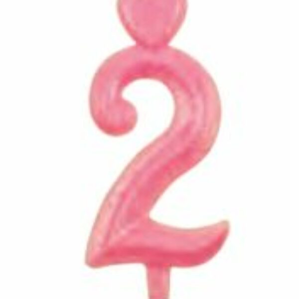 Świeczka cyfra 2 perłowo-różowa firmy DAISY DECOR 763202. Dekoracja tortu urodzinowego dla chłopca oraz dziewczynki. Świeczkę można również skompletować do okrągłej liczby.